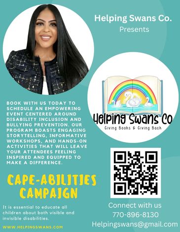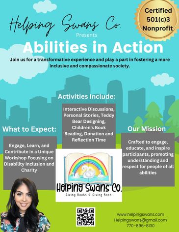 "Our mission at Helping Swans Co. Nonprofit 501c3 is to partner with our community with workshops with our Disability Inclusion Advocate Speaker.